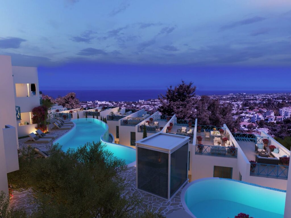 Ege’nin zamansız güzelliğinden ilham alan Santorini Lapta, Kuzey Kıbrıs’ın kalbinde Ege havasını yaşatıyor. Lapta’nın kayalık yamaçlarında, kapanmaz deniz manzarasına sahip özel konumuyla bu butik proje, adeta gerçek bir ada yaşamının huzurunu ve zarafetini yansıtıyor. Beyaz badanalı cepheler, zarif kubbeler, taş döşeli yollar ve özgün mimari dokunuşlarla Santorini’nin ruhu burada yeniden doğuyor.